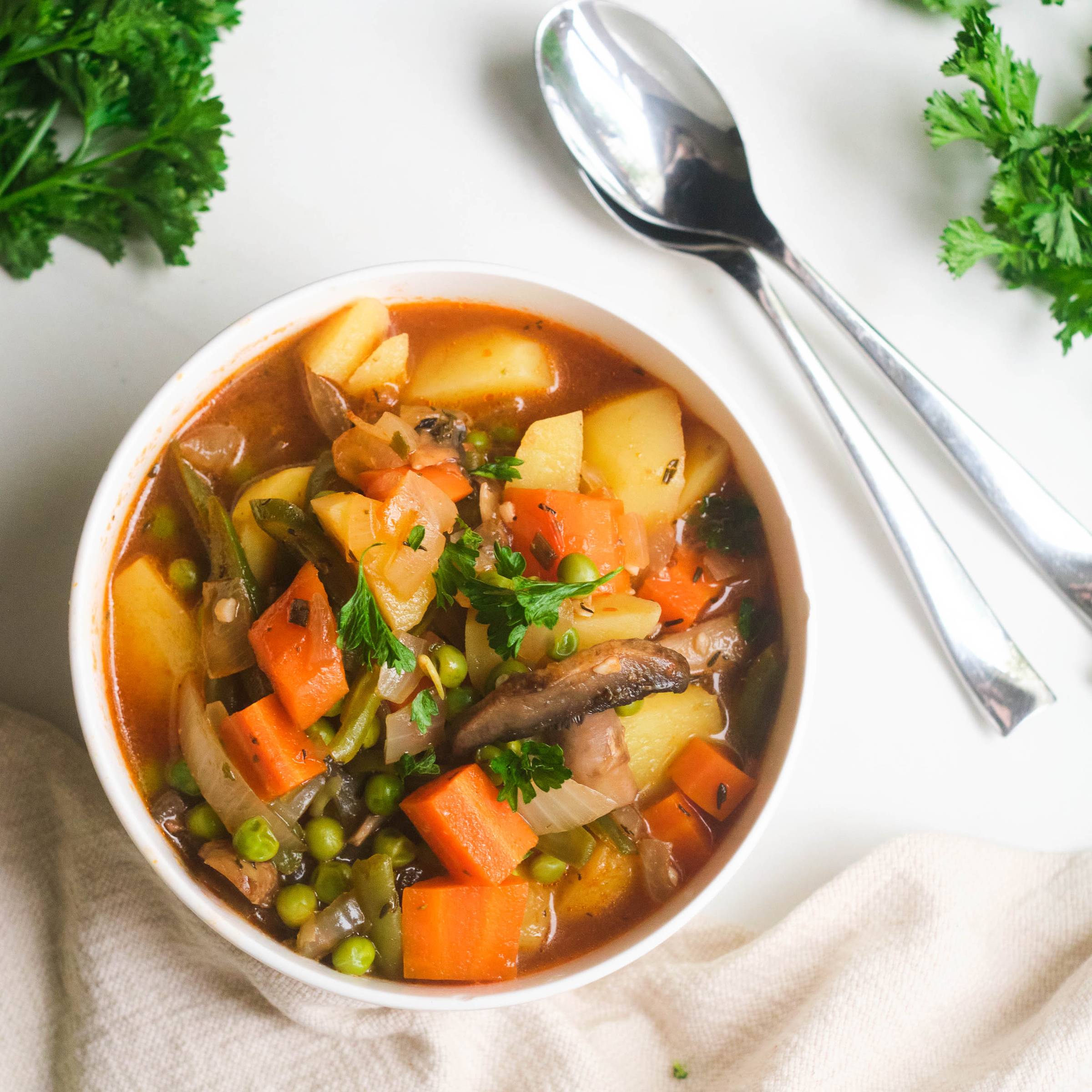 This thick and hearty vegan stew is chock full of chunky vegetables! It’s a simple recipe that comes together quickly with a flavorful gravy that tastes like it’s been simmering for hours.