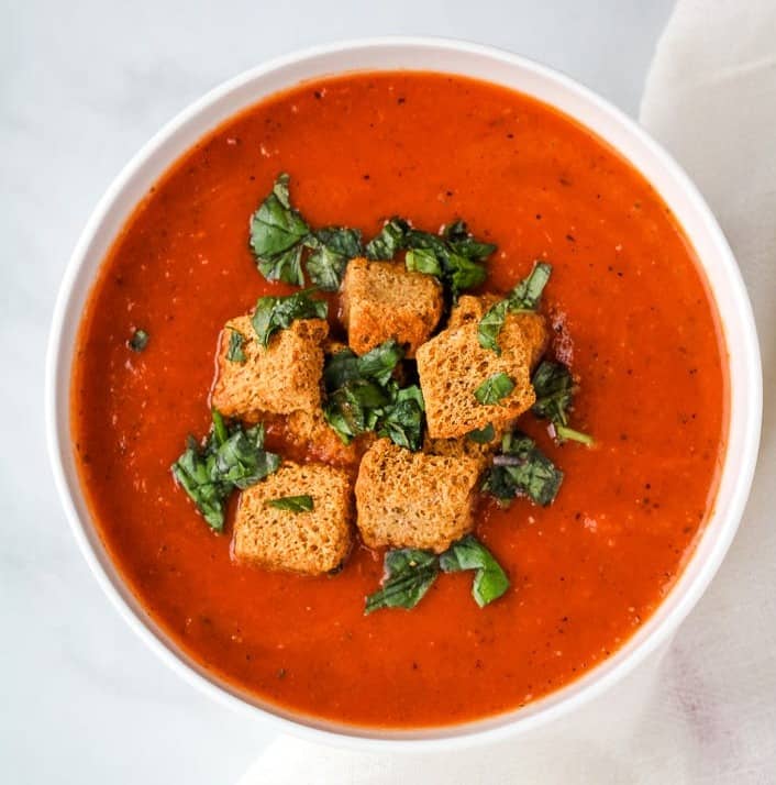 A creamy vegan tomato soup bursting with fresh flavors and spices. With a handful of pantry and fresh ingredients you’ll have a creamy homemade tomato soup in minutes!