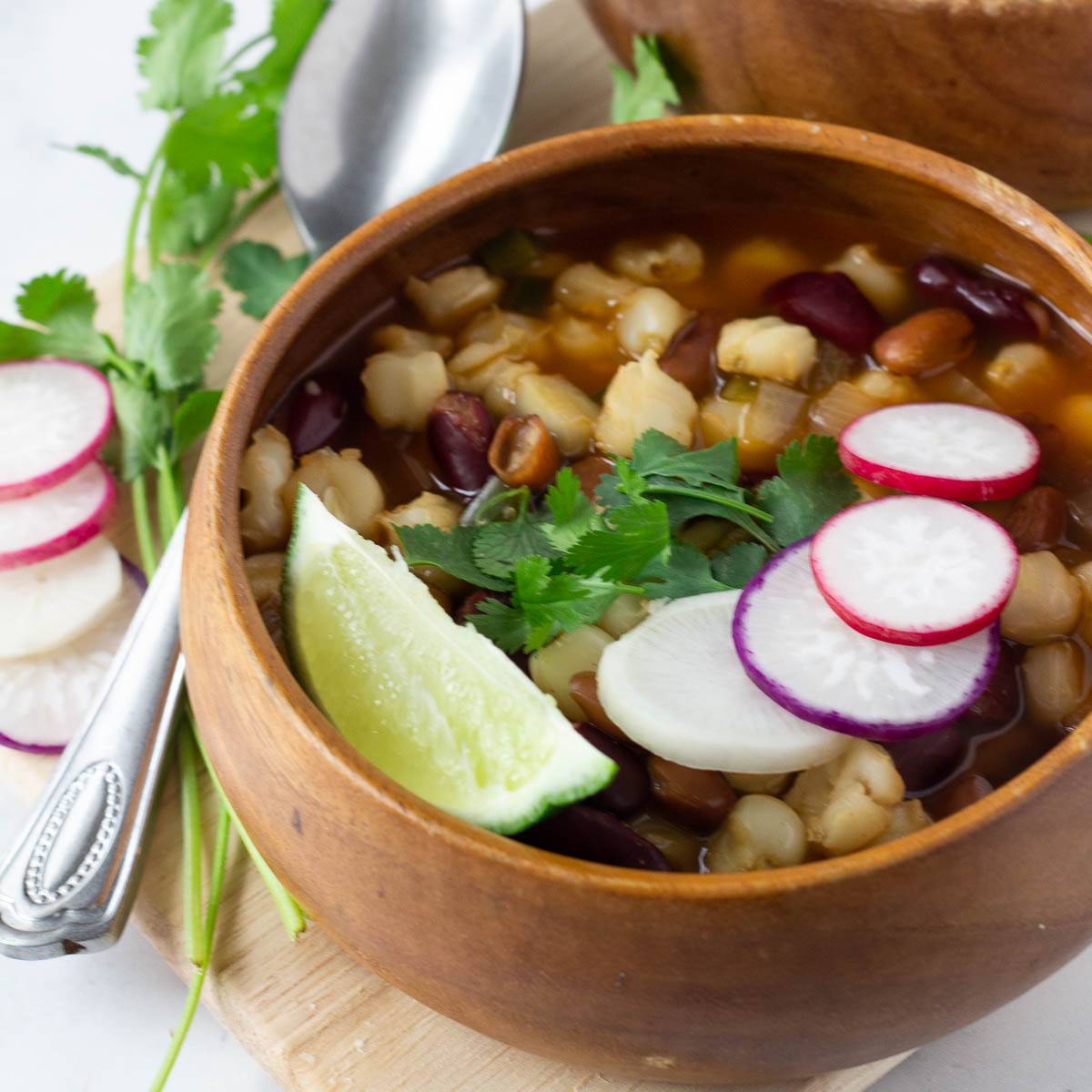 This simple vegan pozole (posole rojo) recipe is a 30 minute weeknight dinner that is full of plant-protein, vitamins, and nutrients, while also being ultra tasty and comforting!