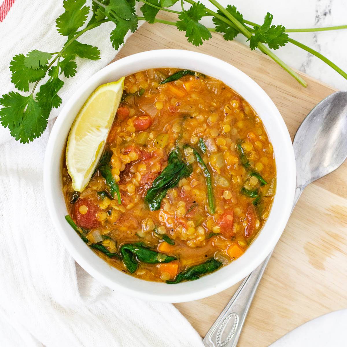 This low calorie lentil soup is chock full of vegetables, leafy greens, protein rich lentils, and tons of spices. Itβs a warm, comforting, heart healthy bowl of goodness.