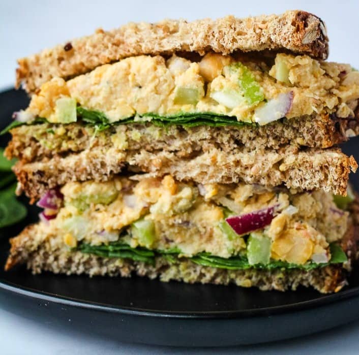 The flavor and texture of this Vegan Tuna Salad Sandwich is spot on! With crunchy celery and onion, and a creamy dairy free dressing, chickpeas are sandwiched between whole grain bread for a healthy whole food plant-based take on the classic!