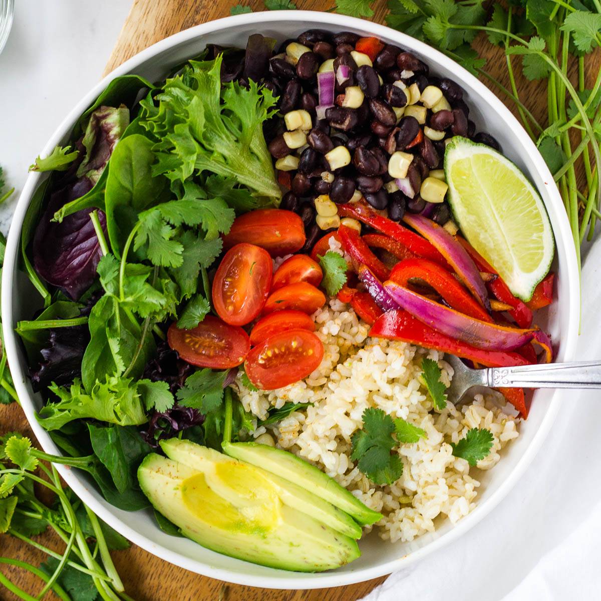When you’re craving take-out, make this simple vegan chipotle bowl, complete with fajita style vegetables, seasoned black beans, rice, and avocado. It’s a simple healthy meal that’s full of smoky and spicy flavors!